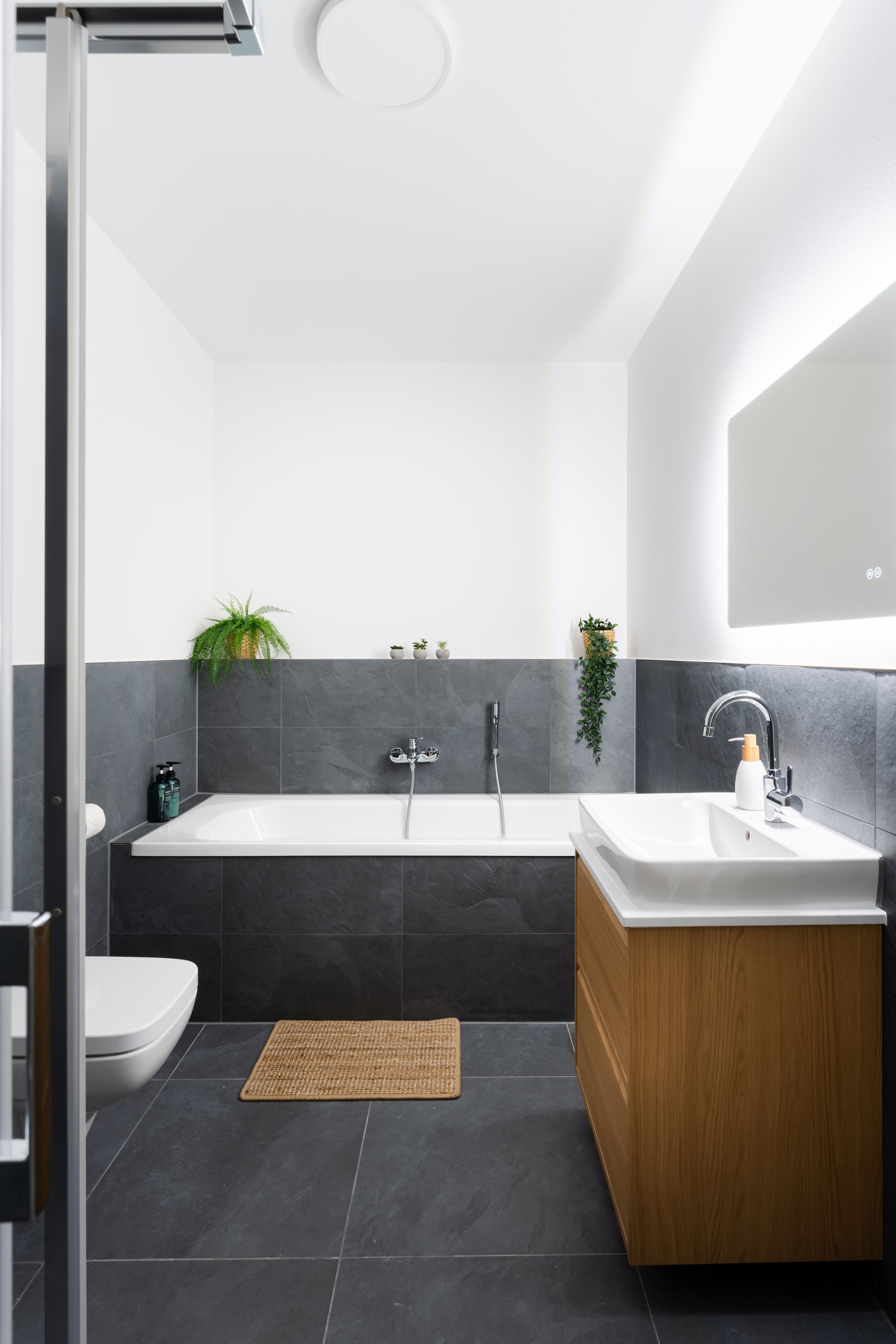 Entspanne bei einer Regendusche oder einem Schaumbad in der Wanne mit Wellness-Feeling.